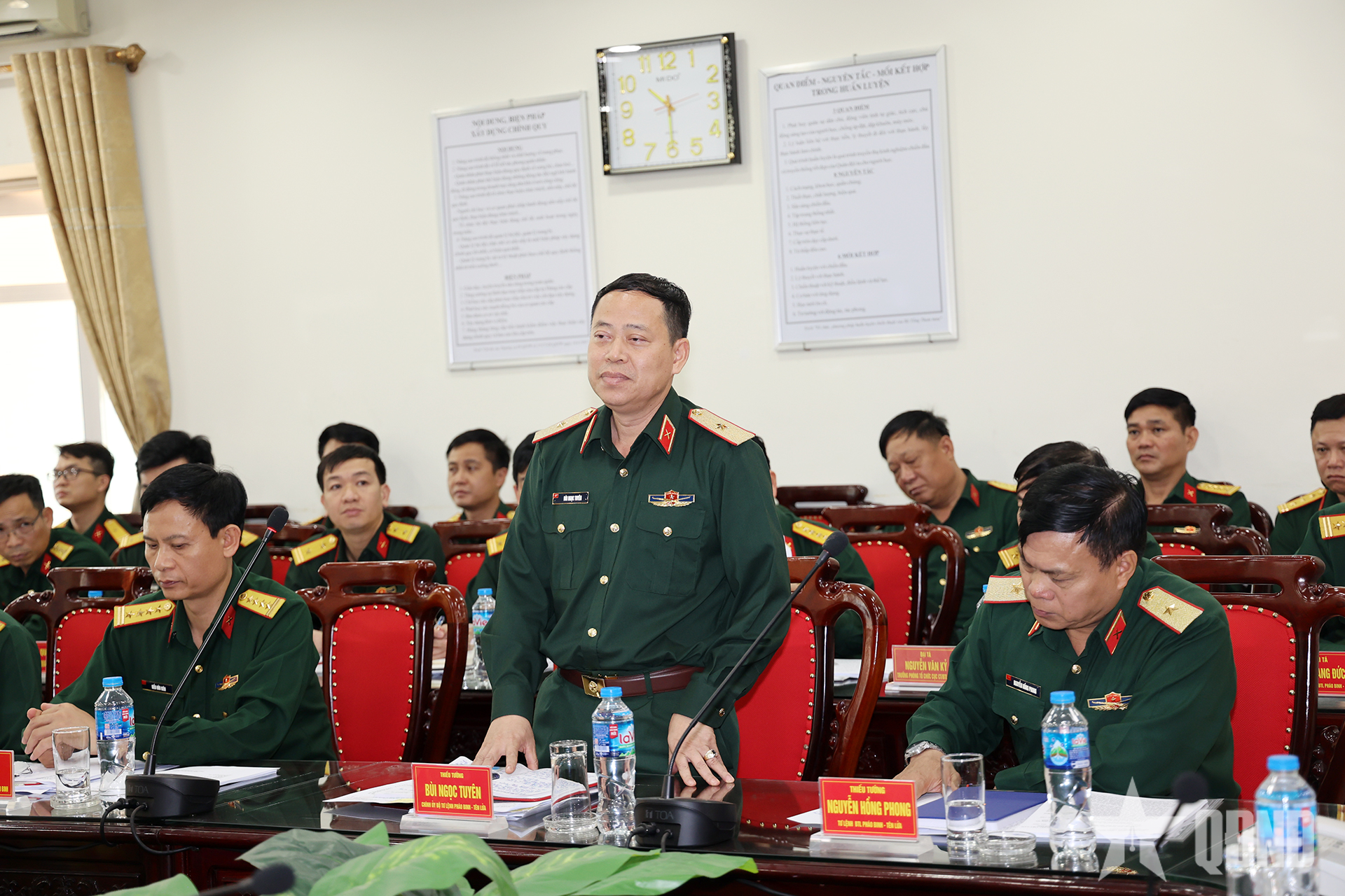 Thiếu tướng Bùi Ngọc Tuyên, Bí thư Đảng ủy, Chính ủy Bộ tư lệnh Pháo binh - Tên lửa phát biểu tại buổi kiểm tra.