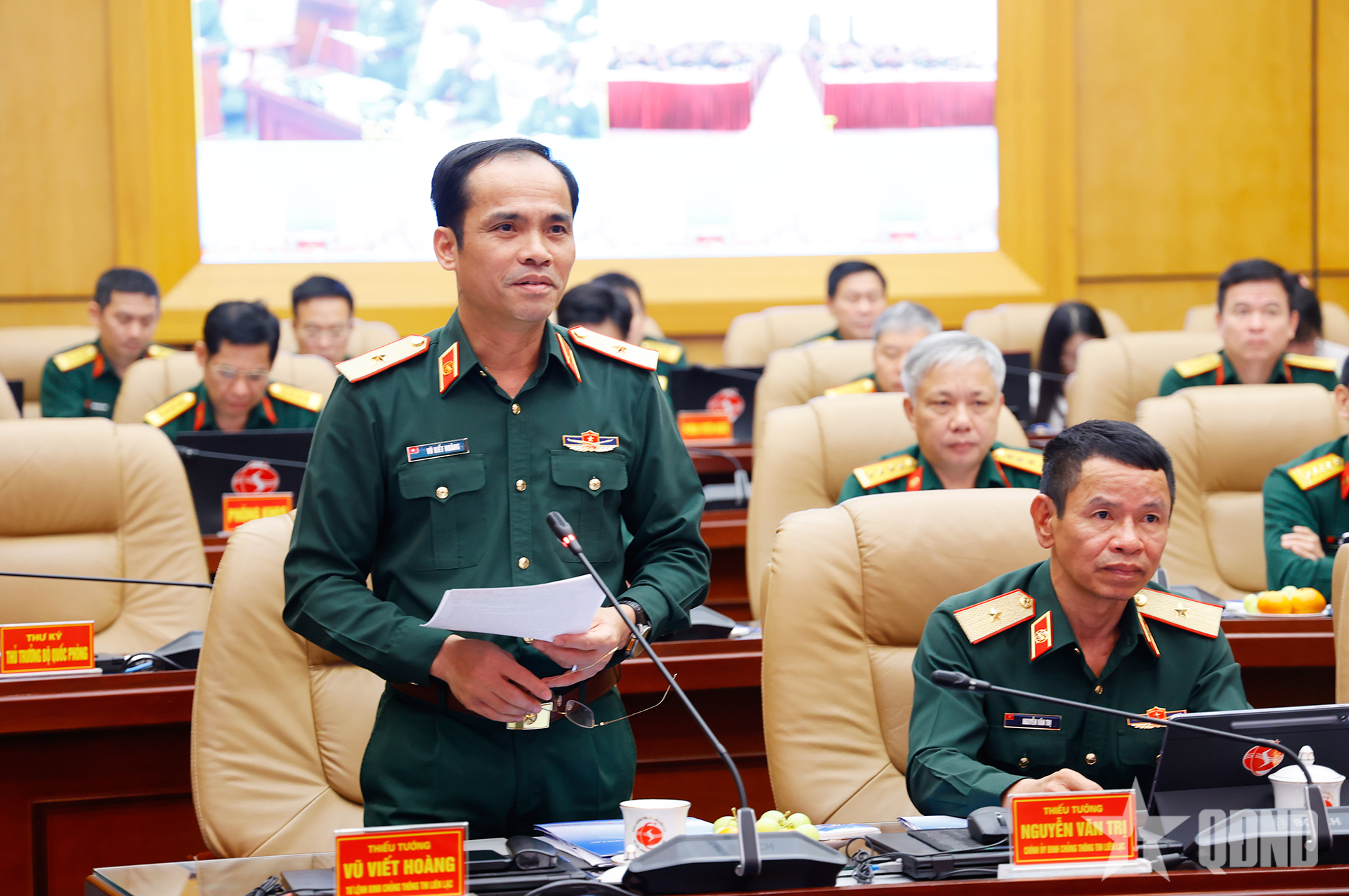 Thiếu tướng Vũ Viết Hoàng, Tư lệnh Binh chủng Thông tin liên lạc phát biểu tại hội nghị.