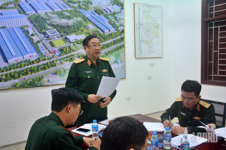 Báo cáo với Thủ trưởng Bộ Quốc phòng, đại diện Ban Quản lý dự án 9 - đơn vị trực tiếp thi công cho biết: Đối với giai đoạn 1 (bồi thường, hỗ trợ tái định cư, giải phóng mặt bằng), địa phương đã phê duyệt phương án đền bù 16/17,3ha và xây dựng tường rào, cổng tạm bảo vệ khu đất. Đối với giai đoạn 2, địa phương đã kiểm đếm, đo đạc diện tích đất thu hồi của khoảng 90% số hộ dân. Dự kiến sẽ niêm yết và phê duyệt phương án bồi thường cho các hộ dân trong tháng 11-2025.