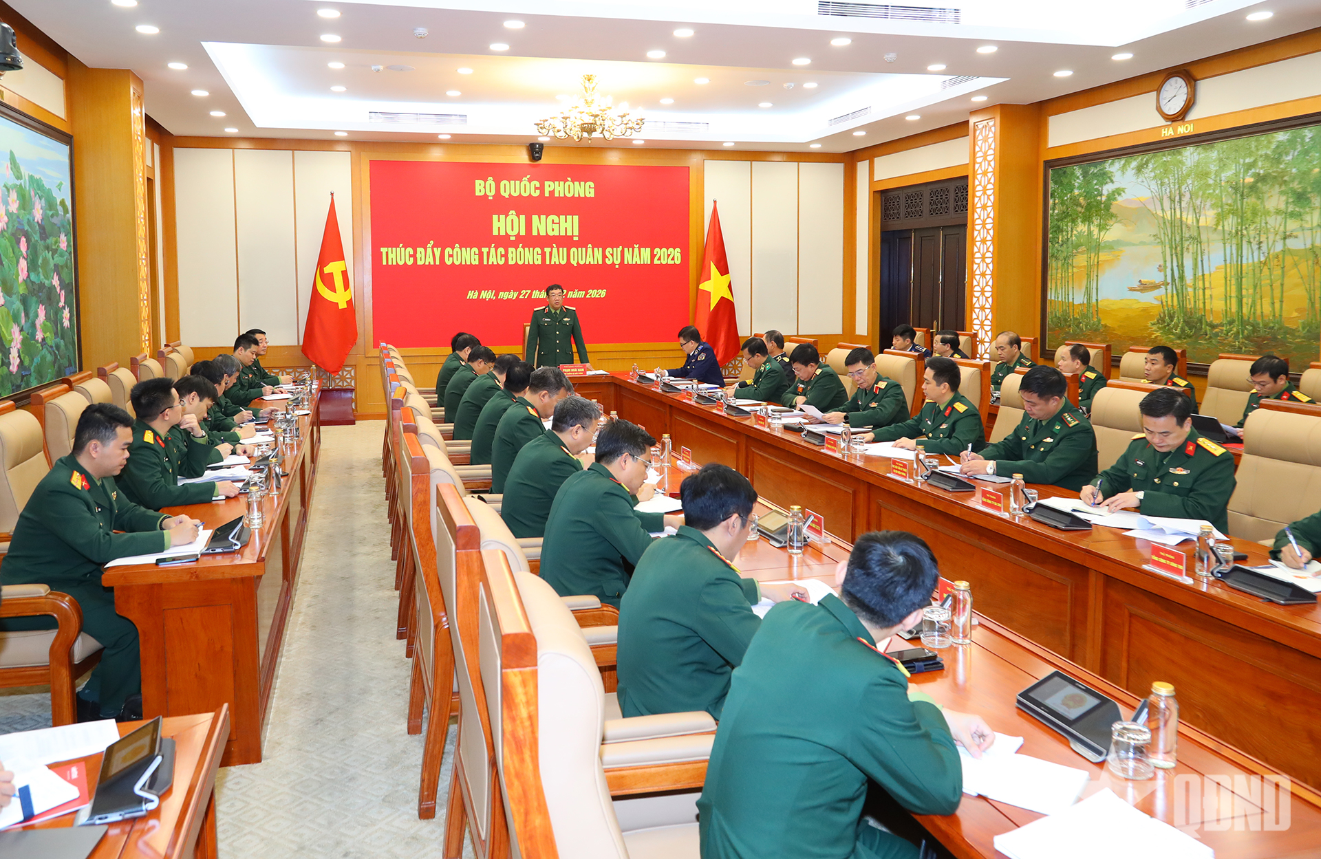 Để triển khai nghiên cứu, thiết kế, đóng mới tàu quân sự bảo đảm chất lượng, tính năng kỹ thuật, chiến thuật hiện đại trang bị cho các lực lượng trong toàn quân trong năm 2026, Thượng tướng Phạm Hoài Nam yêu cầu Tổng cục CNQP chỉ đạo các viện nghiên cứu, cơ sở sản xuất, nhà máy đóng tàu trực thuộc phát huy năng lực, thế mạnh để làm chủ công nghệ thiết kế, thi công đóng tàu và báo cáo Bộ Quốc phòng đặt hàng, giao nhiệm vụ sản xuất vũ khí, khí tài đồng bộ với tiến độ đóng tàu. Triển khai các giải pháp đột phá về kỹ thuật, công nghệ và tổ chức sản xuất để phấn đấu tăng công suất đóng tàu, giảm tối đa thời gian thi công so với hiện nay và quyết tâm nghiên cứu, đóng mới thành công các loại tàu chiến đấu tiên tiến hiện đại.