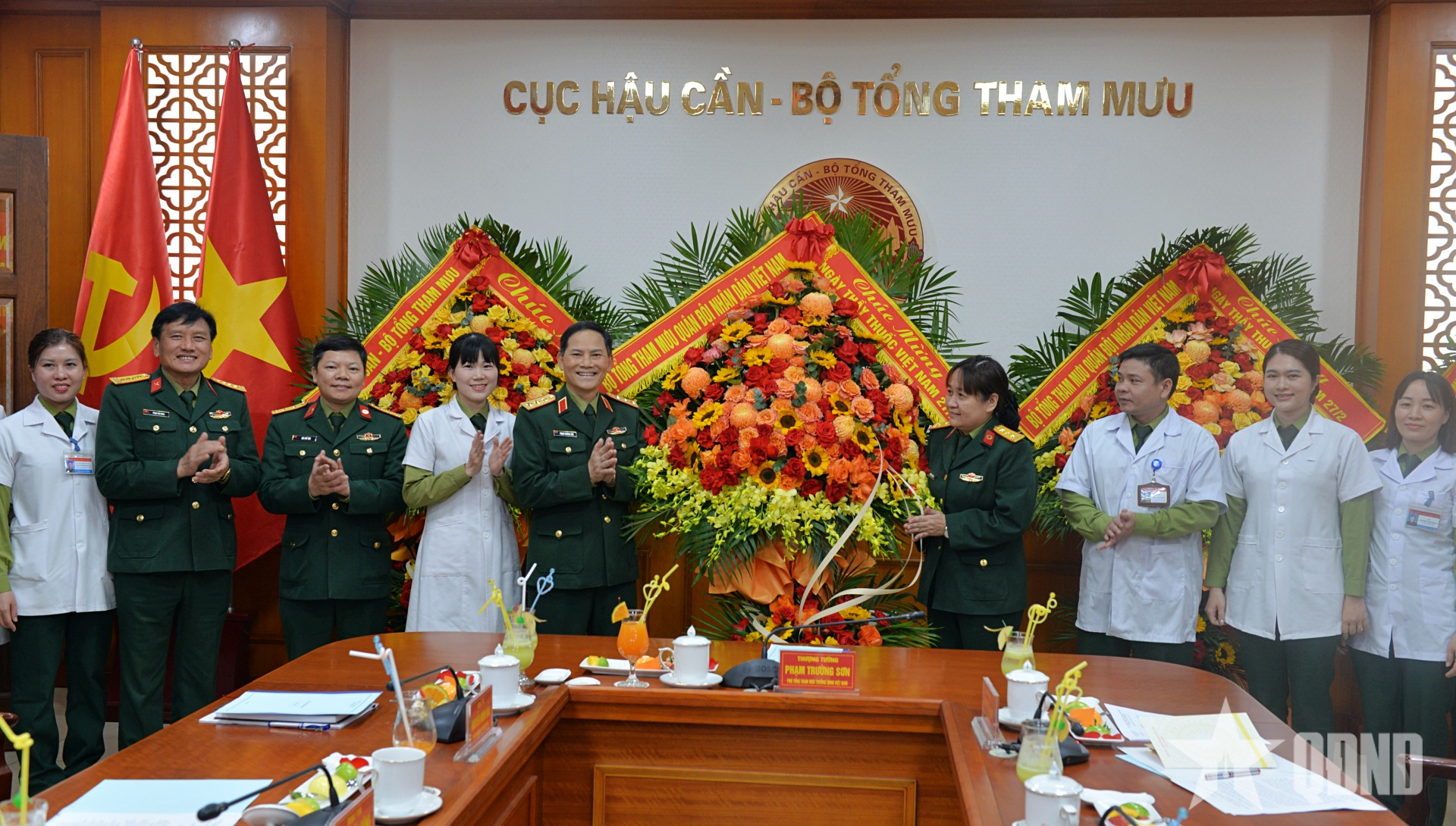 Thay mặt lãnh đạo Bộ Tổng Tham mưu, Thượng tướng Phạm Trường Sơn tặng hoa, gửi lời chúc mừng tốt đẹp nhất tới đội ngũ y, bác sĩ, cán bộ, nhân viên Bệnh viện Trung ương Quân đội 108, ngành quân y Bộ Tổng Tham mưu và Bệnh xá Cơ quan Bộ Quốc phòng nhân Ngày truyền thống vẻ vang của ngành y tế; đồng thời bày tỏ sự trân trọng đối với những hy sinh thầm lặng, tinh thần trách nhiệm và y đức của đội ngũ thầy thuốc quân y.