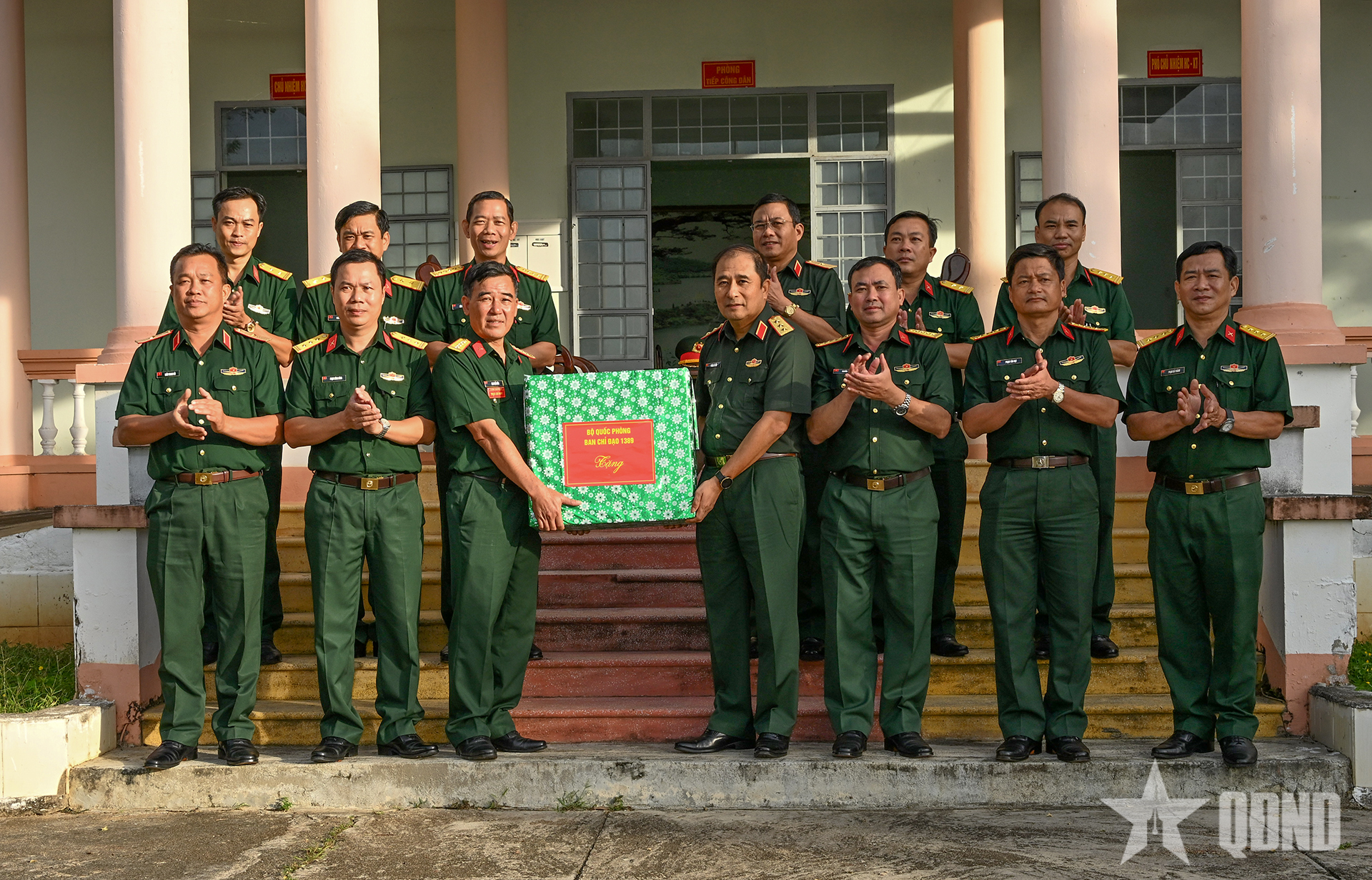 Thượng tướng Phùng Sĩ Tấn trao quà tặng Ban chỉ huy Phòng thủ khu vực 2 - Đak Pơ.