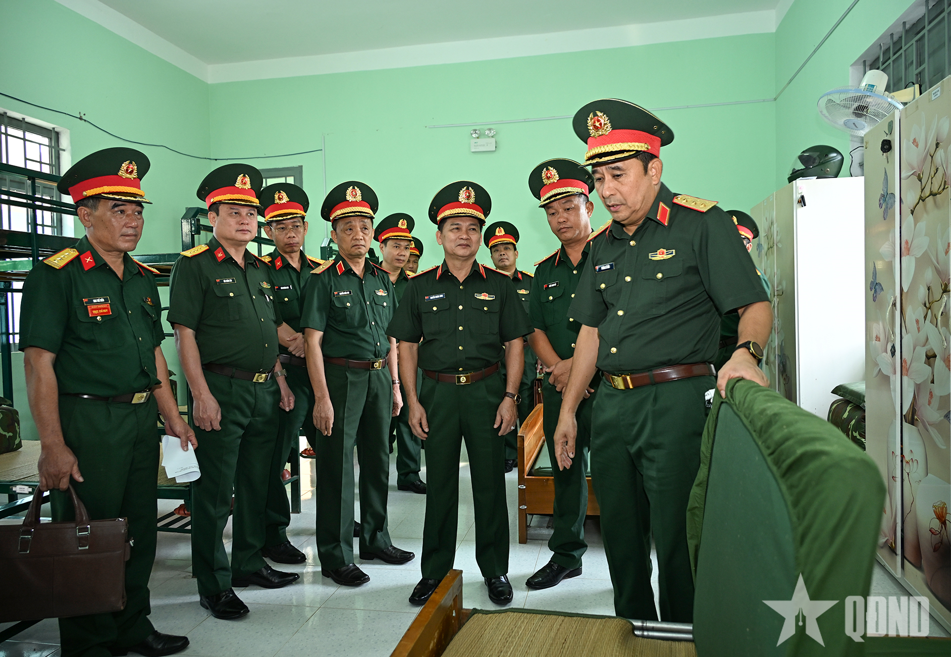 Thượng tướng Phùng Sĩ Tấn kiểm tra xây dựng chính quy, sắp xếp nội vụ của Ban chỉ huy Phòng thủ khu vực 2 - Đak Pơ.