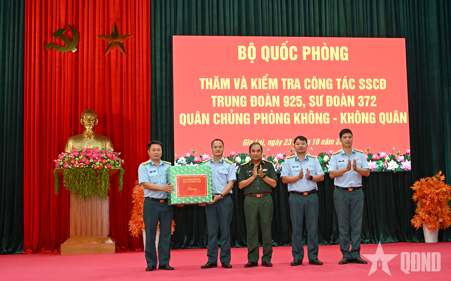 Thượng tướng Phùng Sĩ Tấn trao quà tặng Trung đoàn 925.