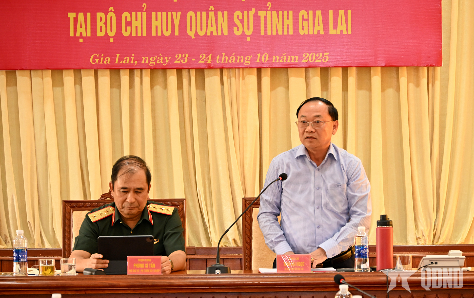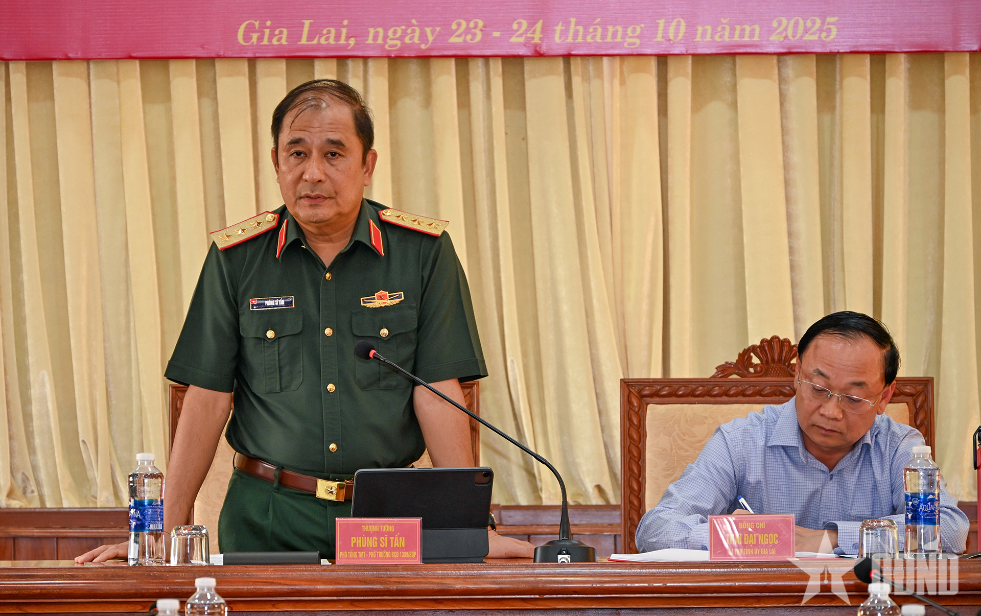 Thượng tướng Phùng Sĩ Tấn yêu cầu, thời gian tới, Bộ CHQS tỉnh Gia Lai rà soát các nhiệm vụ, các nghị quyết, chỉ lệnh, kế hoạch, phấn đấu hoàn thành tốt các nhiệm vụ còn lại của năm 2025. Tổ chức tập huấn, bồi dưỡng những nội dung mới trong huấn luyện, sẵn sàng chiến đấu, công tác tuyển quân, đẩy mạnh chuyển đổi số. Thường xuyên phối hợp nắm và dự báo đúng tình hình, tham mưu xử lý kịp thời các tình huống, không để bị động, bất ngờ trong mọi tình huống.