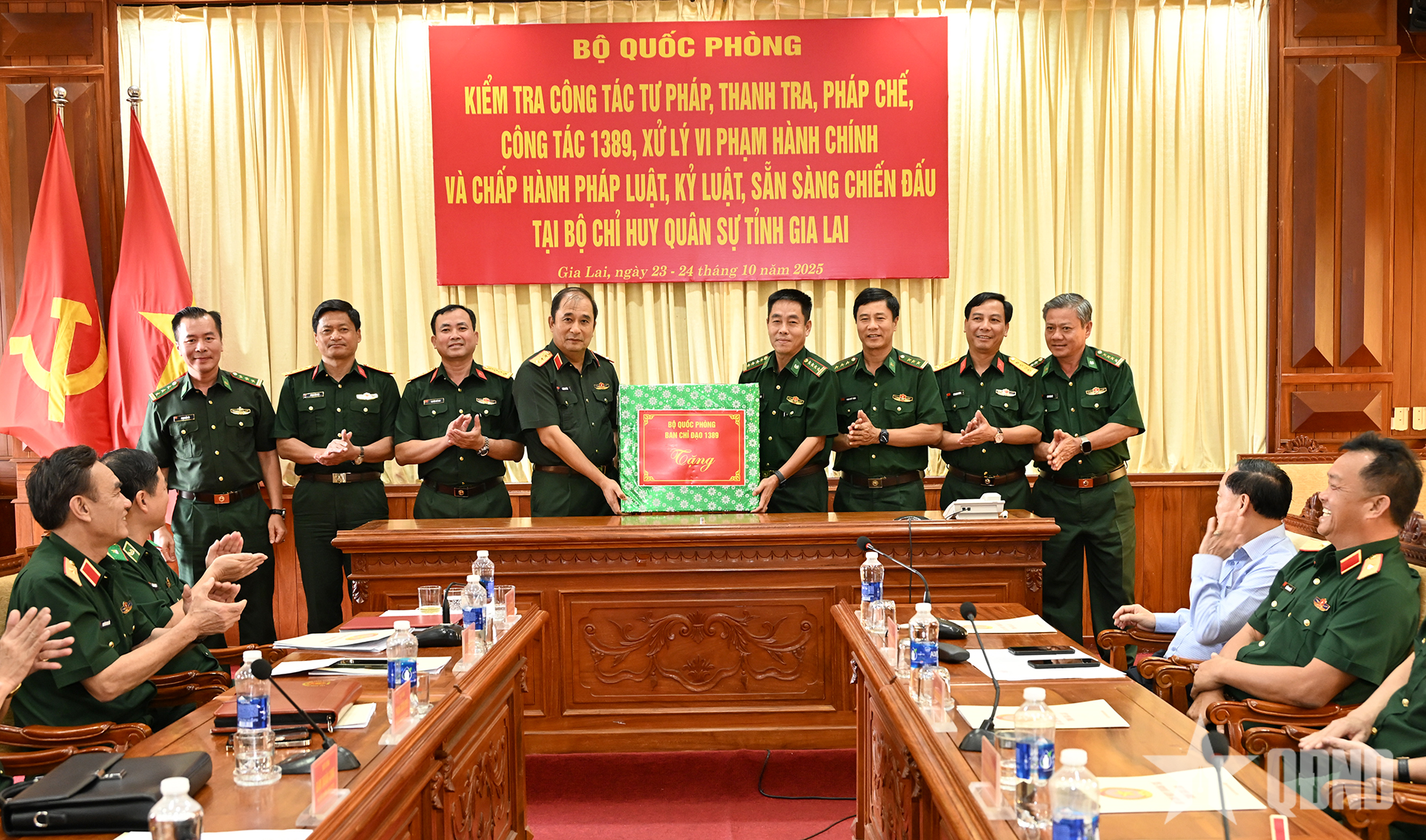 Nhân dịp này, Thượng tướng Phùng Sĩ Tấn và đoàn kiểm tra đã trao quà tặng các đơn vị của Bộ CHQS tỉnh Gia Lai và Trung đoàn 925.