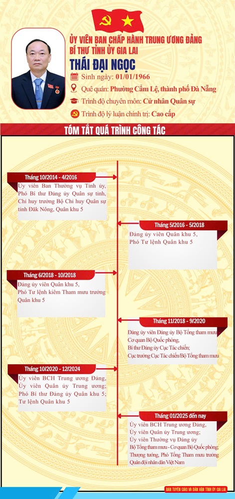 Phó tổng Tham mưu trưởng Quân đội nhân dân Việt Nam Thái Đại Ngọc được chỉ định giữ chức Bí thư Tỉnh ủy Gia Lai nhiệm kỳ 2025 -2030.