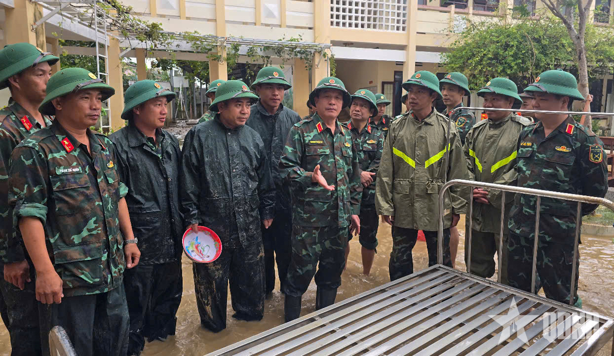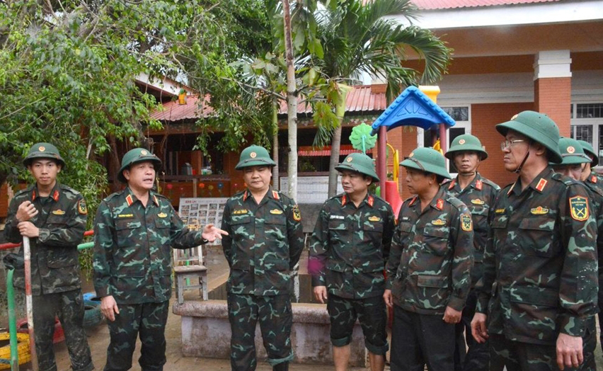 Thượng tướng Trương Thiên Tô kiểm tra LLVT Quân khu 5 giúp địa phương và nhân dân khắc phục hậu quả mưa lũ.
