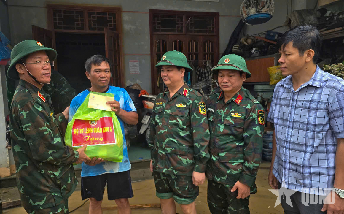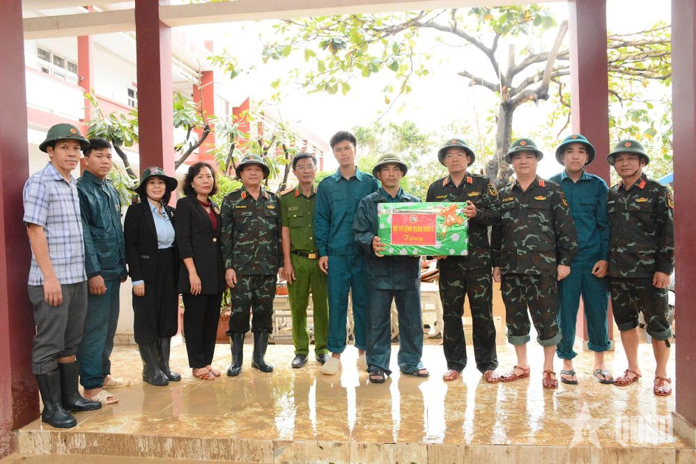 Nhân dịp này, Bộ tư lệnh Quân khu 5 cũng trao nhiều phần quà tặng nhân dân và LLVT Quân khu đang giúp nhân dân khắc phục hậu quả lũ.