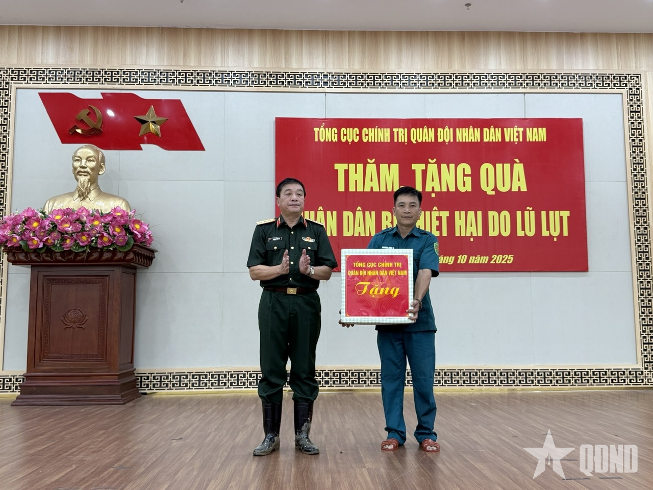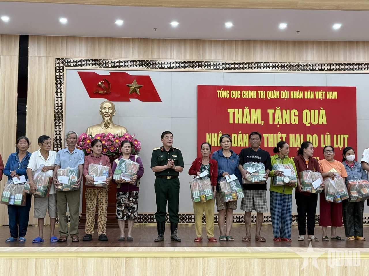 Thay mặt thủ trưởng Tổng cục Chính trị, Thượng tướng Trương Thiên Tô bày tỏ sự sẻ chia trước những mất mát, đau thương của đồng bào các tỉnh miền Trung trong suốt những ngày qua.