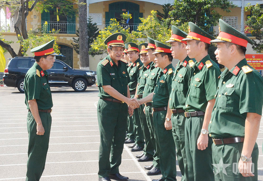 Cán bộ chủ chốt Trường Sĩ quan Công binh đón Thượng tướng Võ Minh Lương.