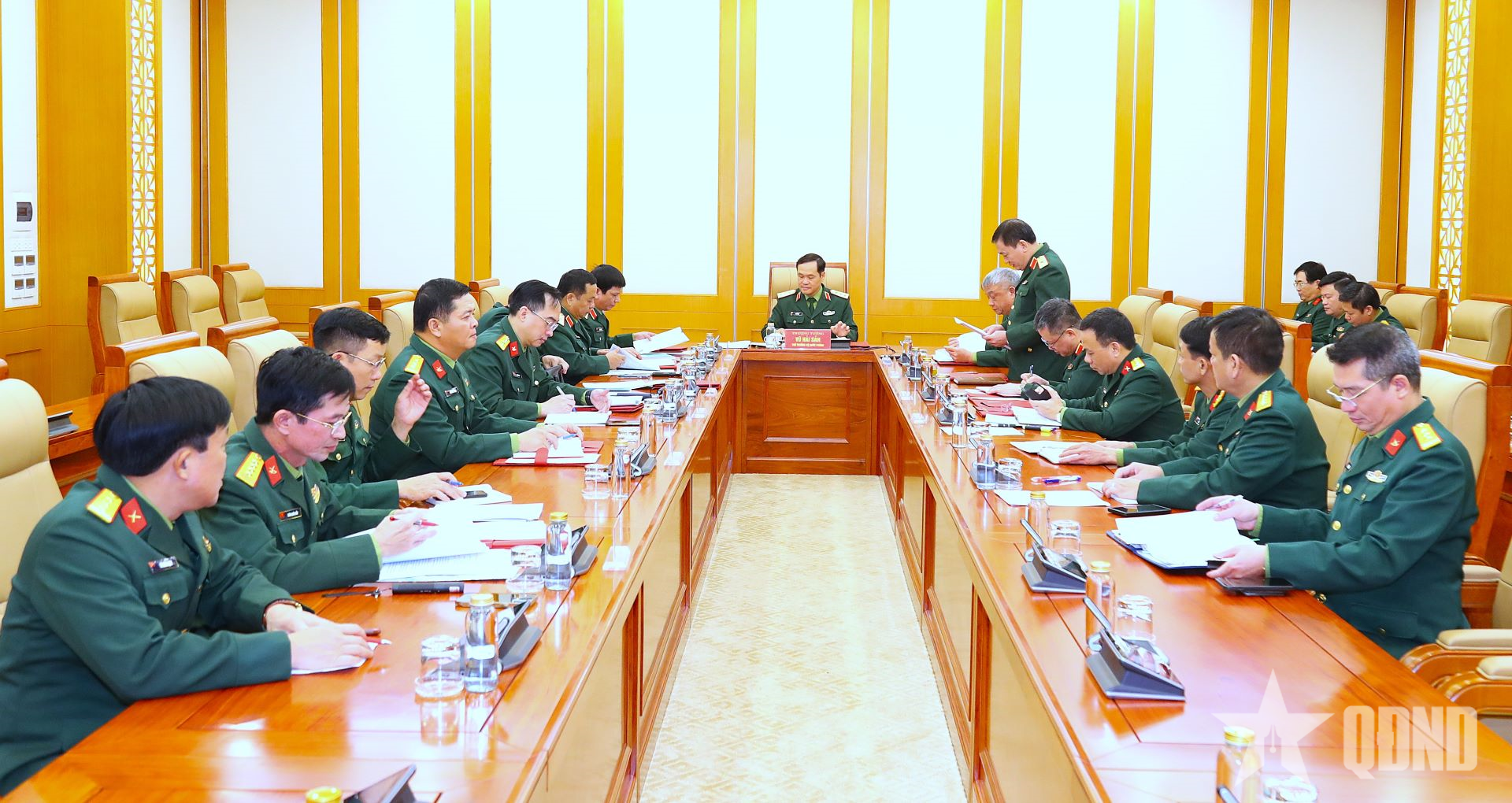Thượng tướng Vũ Hải Sản chủ trì buổi làm việc.
