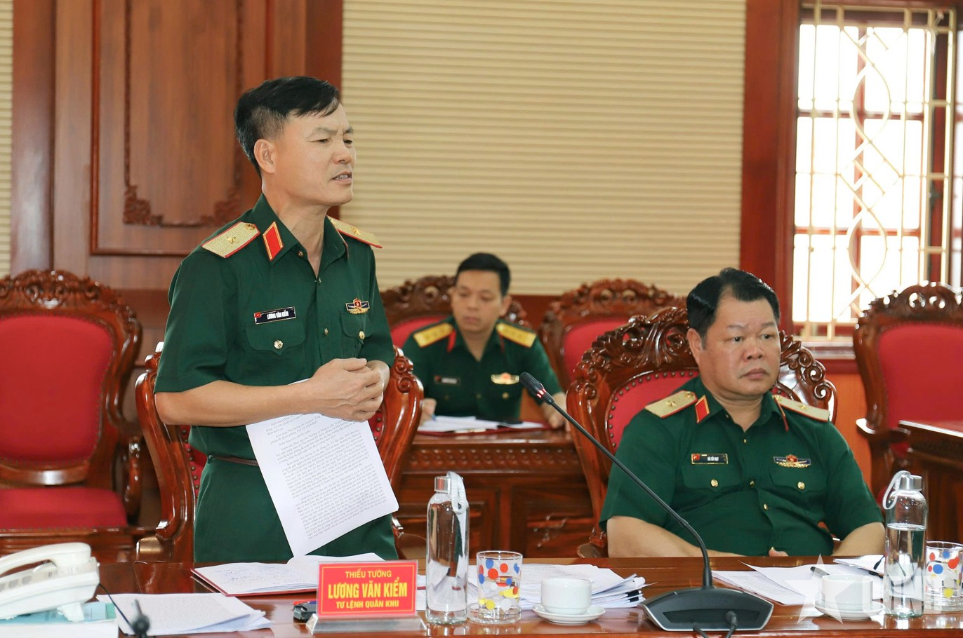 Thiếu tướng Lương Văn Kiểm, Tư lệnh Quân khu 3 phát biểu tại hội nghị.
