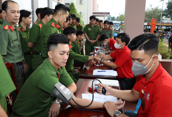 Cán bộ, chiến sĩ Công an các đơn vị, địa phương tích cực tham gia hiến máu tình nguyện.