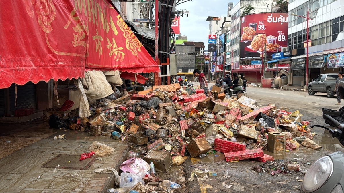 Khu dân cư Hat Yai sau đợt lũ lụt nghiêm trọng. Ảnh: Khaosod