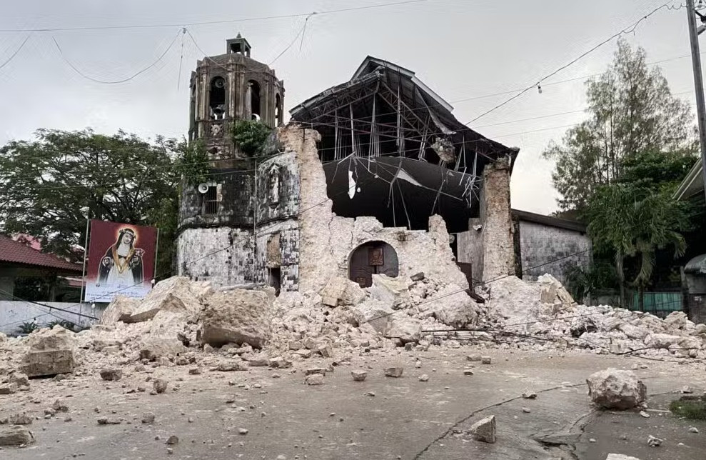 Đền thờ Tổng giáo phận Santa Rosa de Lima ở thị trấn Daanbantayan, Philippines, bị hư hại trong trận động đất. Ảnh: Cebu Daily News.