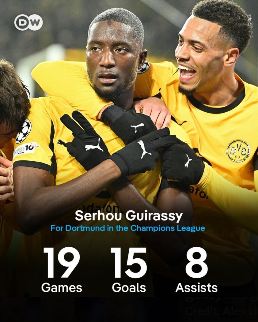 Guirassy là "nguồn sống" của Dortmund tại Champions League từ mùa trước đến nay. (Ảnh: dw_sports)