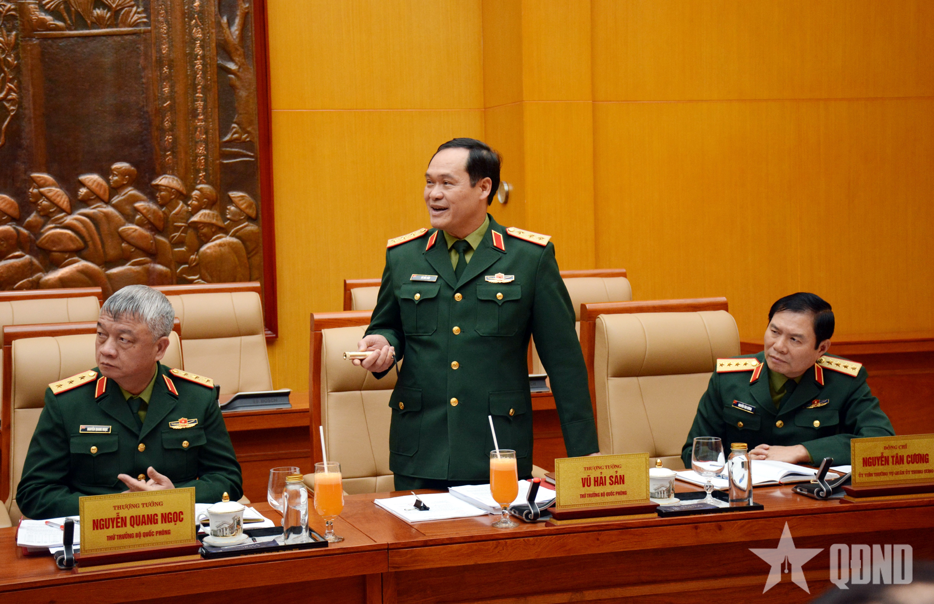 Thượng tướng Vũ Hải Sản phát biểu tại hội nghị.