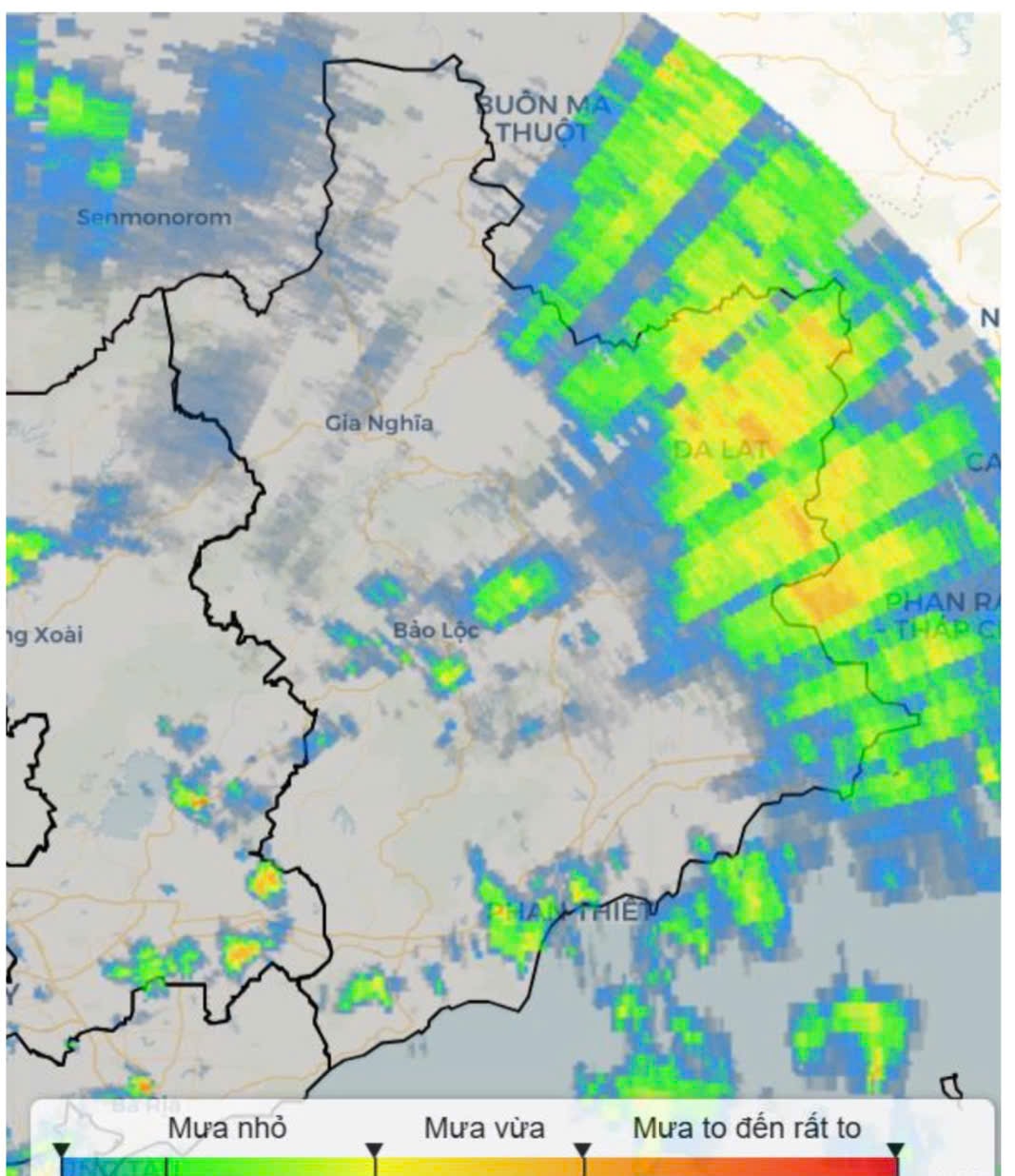 Theo đó, phân tích trên ảnh mây vệ tinh và ảnh rađar thời tiết cho thấy, vùng mây đối lưu tồn tại trên khu vực các thôn, tổ dân phố thuộc các xã, phường như: Xuân Hương - Đà Lạt; Cam Ly - Đà Lạt; Lâm Viên - Đà Lạt; Tuy Phong; Xuân Trường - Đà Lạt; Đinh Trang Thượng; Lang Biang - Đà Lạt; Hàm Tân; Phan Sơn; Lạc Dương; Đơn Dương; Ka Đô; Quảng Lập; D’Ran; Tà Năng; Phú Sơn Lâm Hà; Đam Rông 1; Nam Hà Lâm Hà; Đam Rông 2; Tiến Thành; Nam Ban Lâm Hà; Đam Rông 3; Đam Rông 4; Hàm Kiệm.