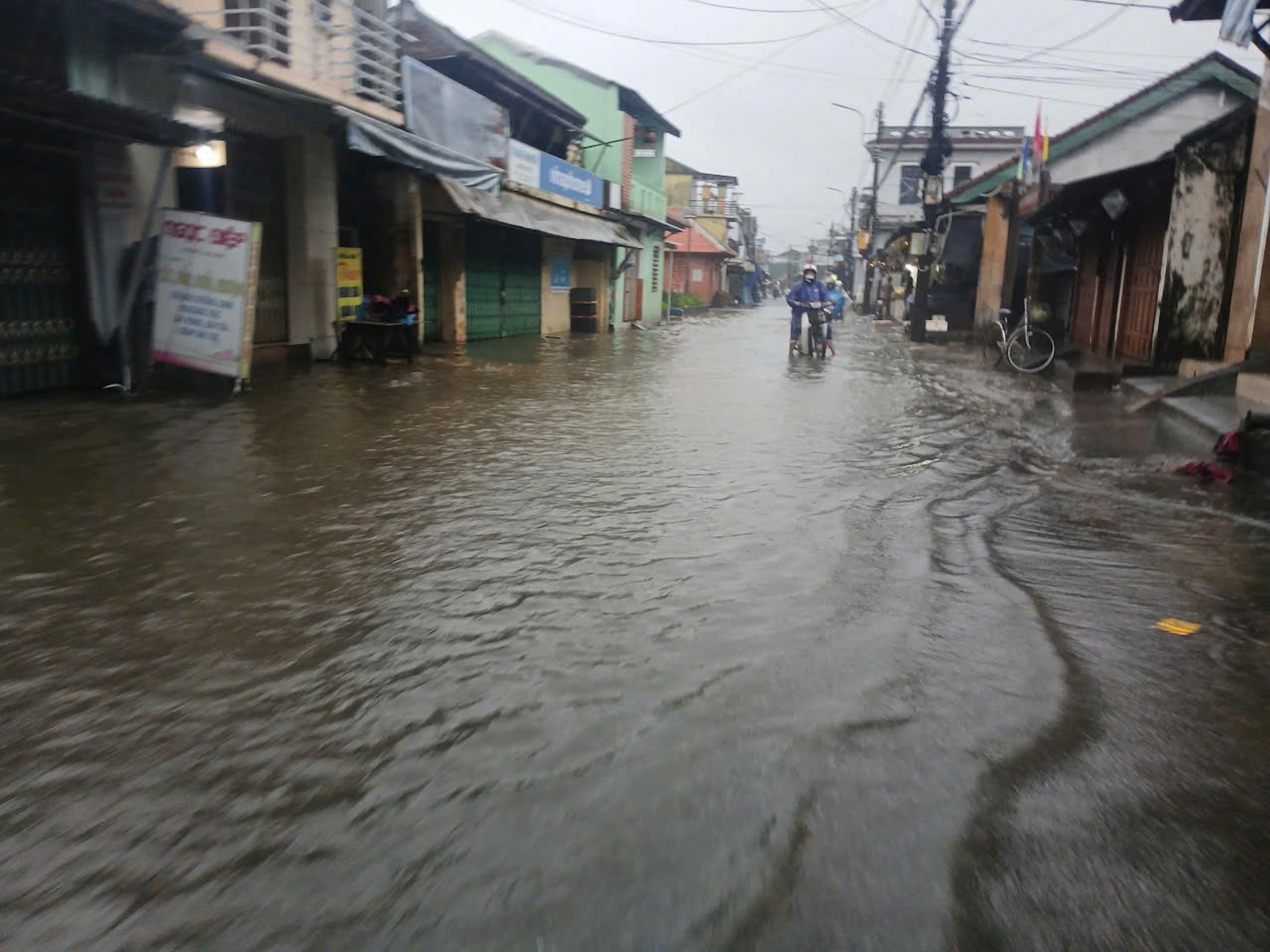 Nước sông dâng cao, đường ở khu phố cổ Bao Vinh (TP Huế) ngập sâu