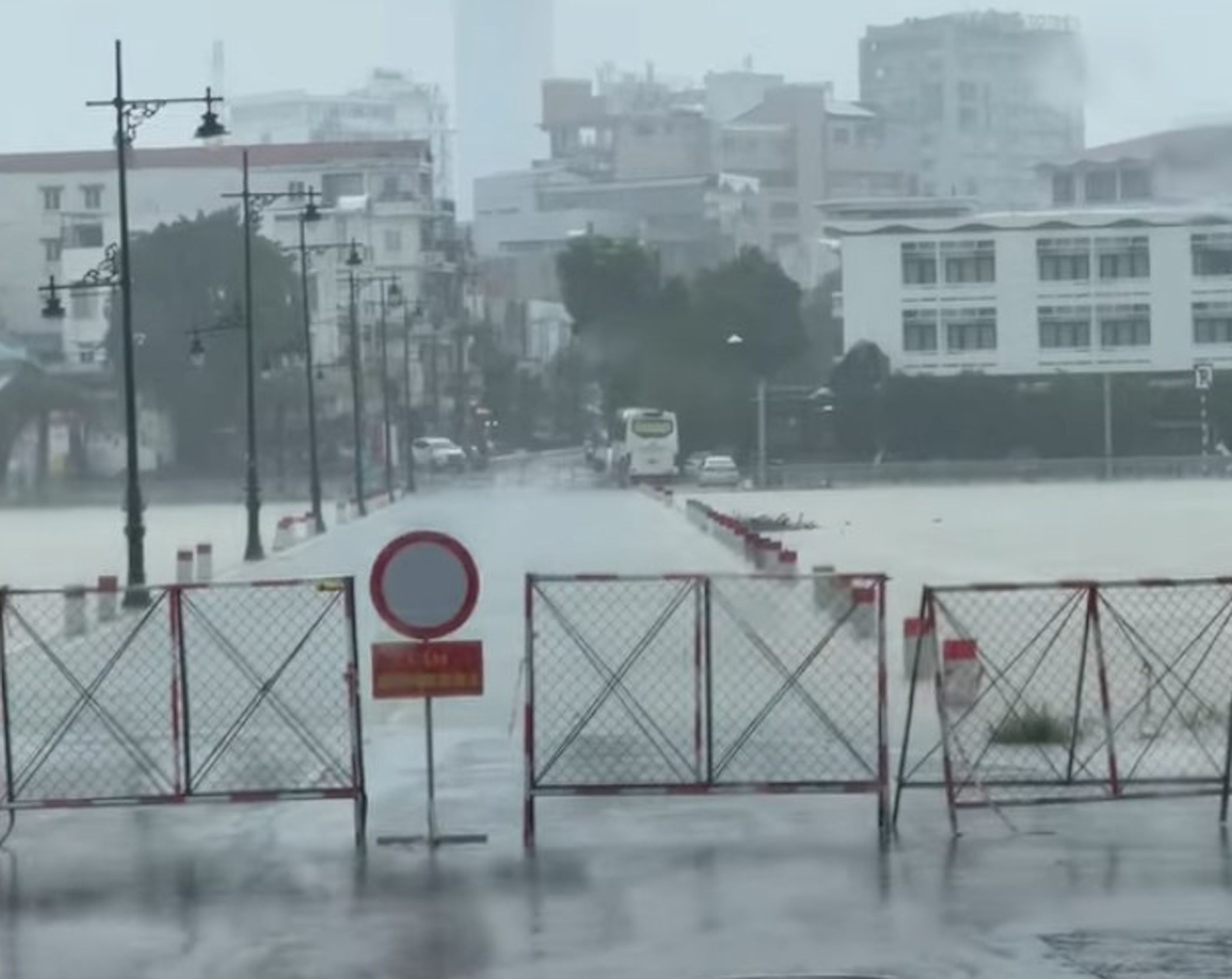 Ghi nhận của PV Báo Điện tử VTC News, mưa lớn khiến nước trên sông Hương và sông Bồ lên rất nhanh. Bắt đầu từ chiều 26/10, nước tràn qua Đập Đá (sông Hương) khiến các phương tiện đi lại hướng đường Lê Lợi - Nguyễn Sinh Cung không thể qua lại.
