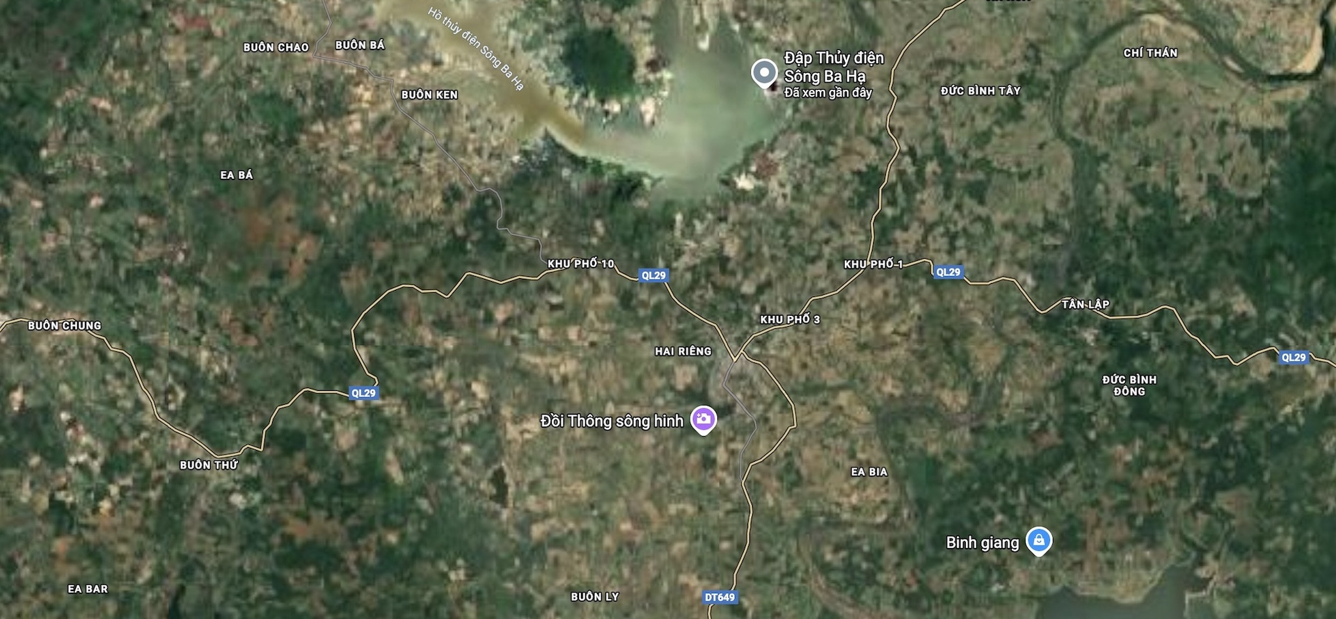 Vị trí hồ thủy điện Sông Ba Hạ. Ảnh: Google Map