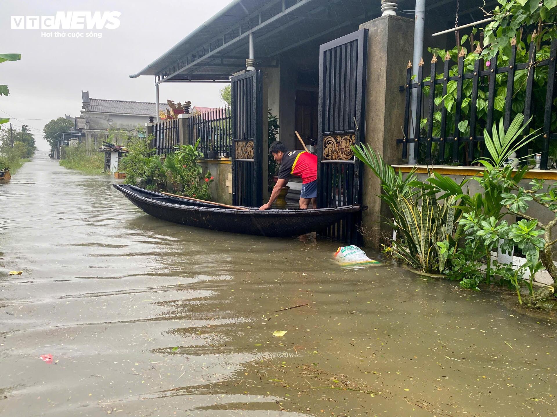 Ghi nhận của PV Báo Điện tử VTC News tại Tổ dân phố Phú Lương A (phường Hóa Châu, TP Huế) nước sông Bồ lên nhanh gây ngập tại hầu hết các nẻo đường từ 40 - 60cm.