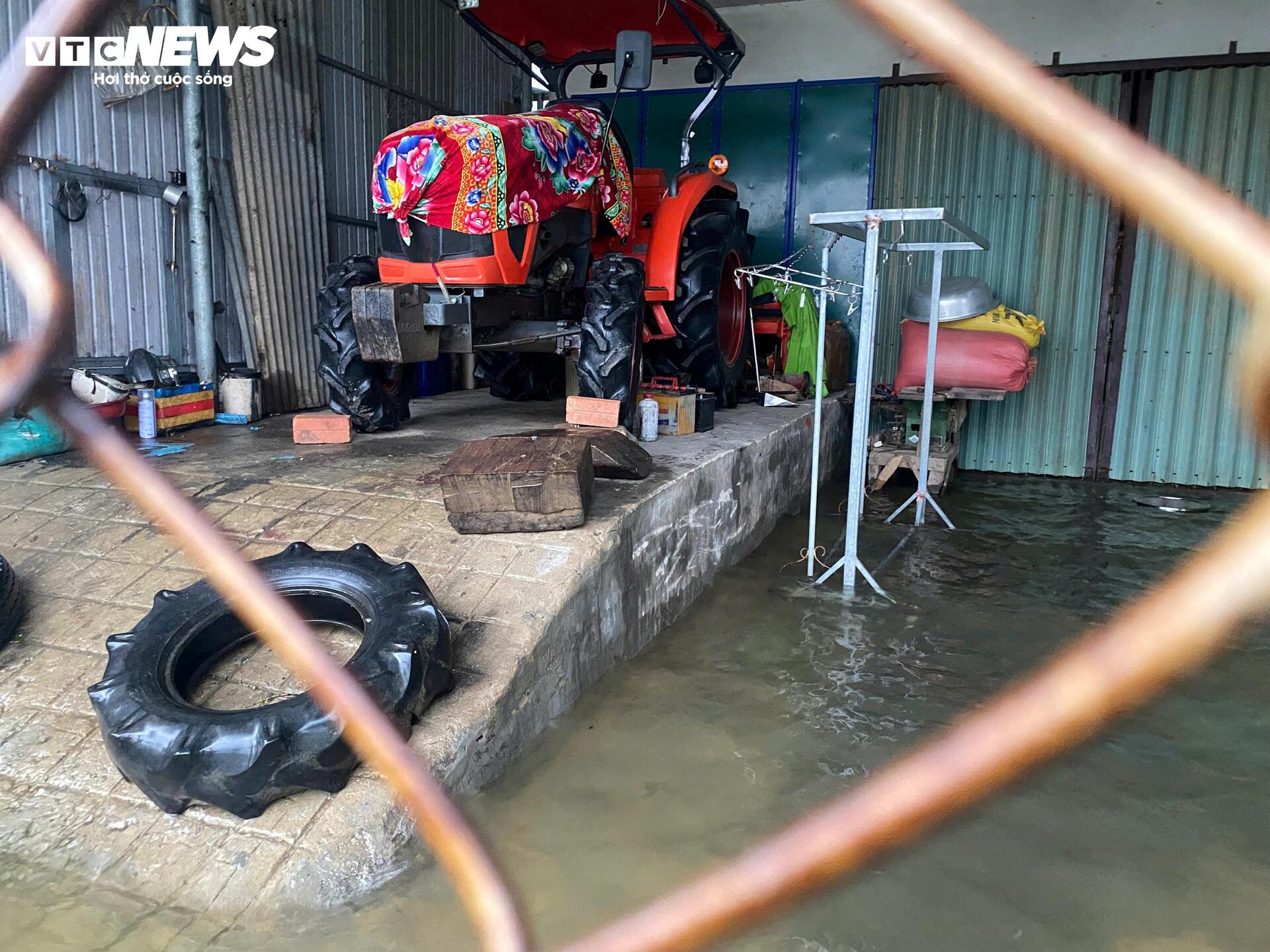 Người dân phường Hóa Châu (TP Huế) chủ động kê cao tài sản, phương tiện máy móc nông nghiệp lên cao để tránh lụt.