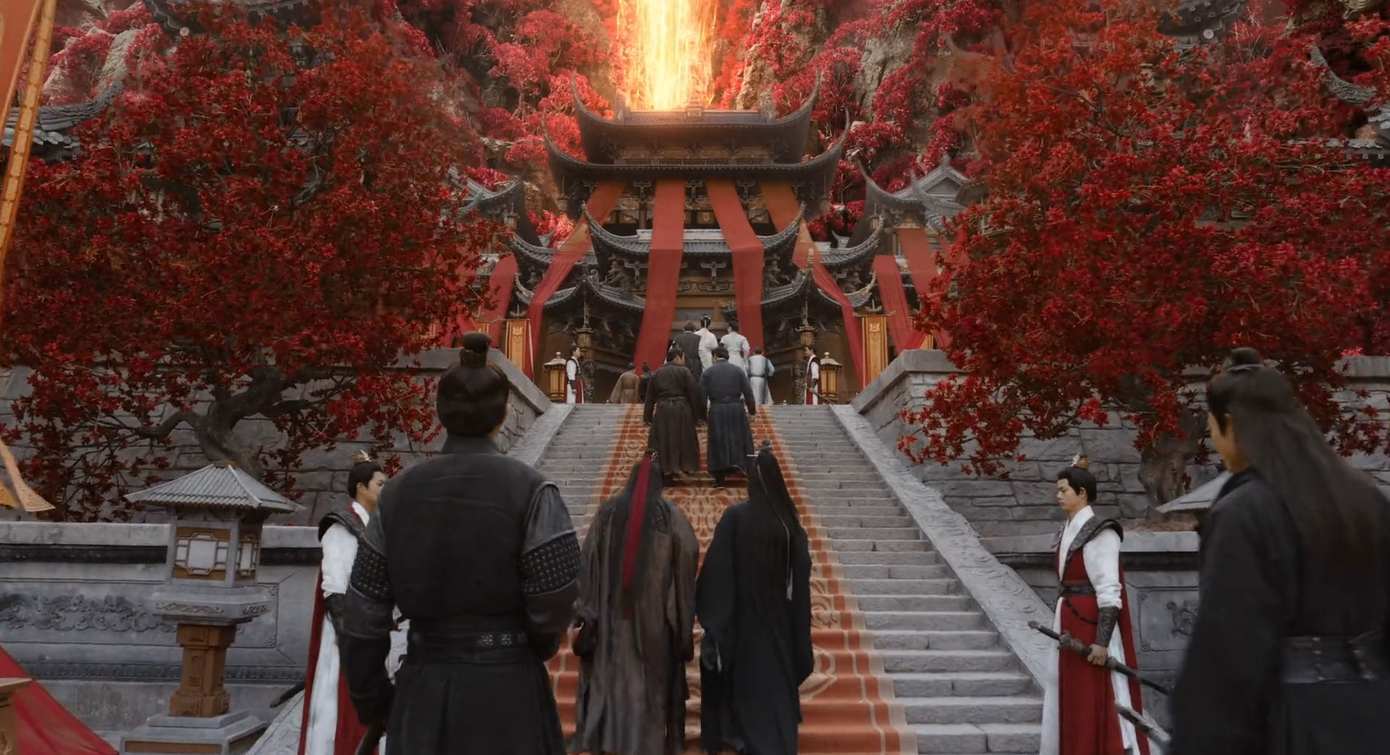 Đội sản xuất của Trường Nguyệt Tẫn Minh cũng tham gia Thủy Long Ngâm. Vì thế, đây là ê-kíp hiếm hoi được phép tác động nhiều nhất đến "Hành Dương Tông", nhuộm đỏ nơi này bởi lụa và hoa giả để biến nó thành Kiếm Vương Thành.