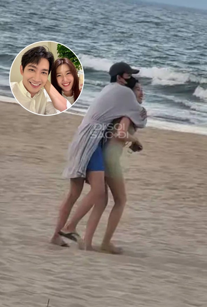 Thúy Ngân và Võ Cảnh từng bị bắt gặp đi du lịch, ôm nhau giữa biển.