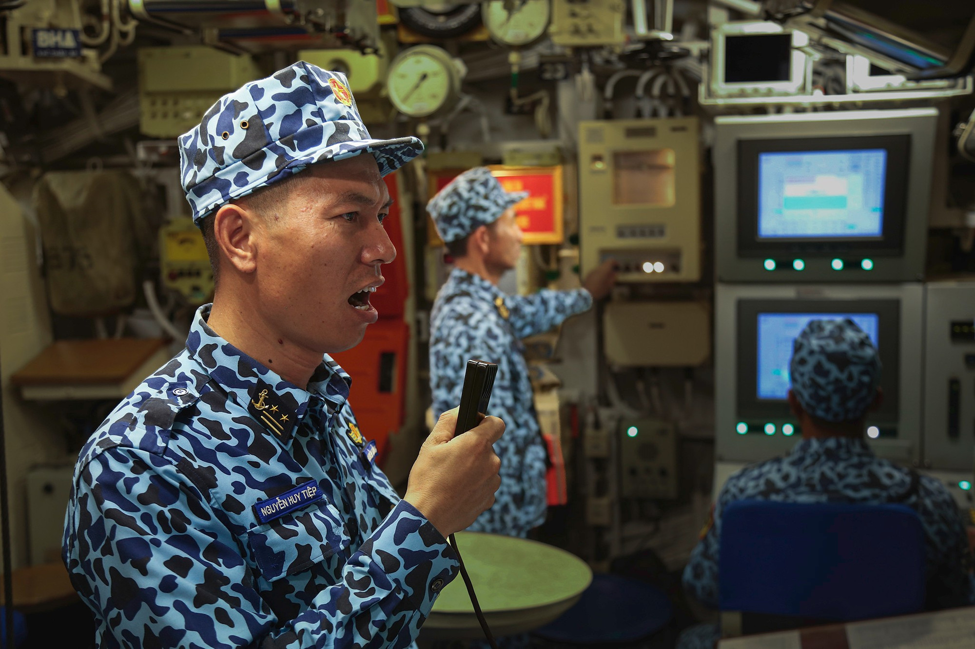 Luyện ý chí thép từ trong lòng biển. Khẩu lệnh chiến đấu của Trung tá Nguyễn Huy Tiệp, Phó Thuyền trưởng càng thêm dứt khoát, dõng dạc, truyền lửa cho đồng đội trong những buổi huấn luyện trinh sát trong lòng biển.