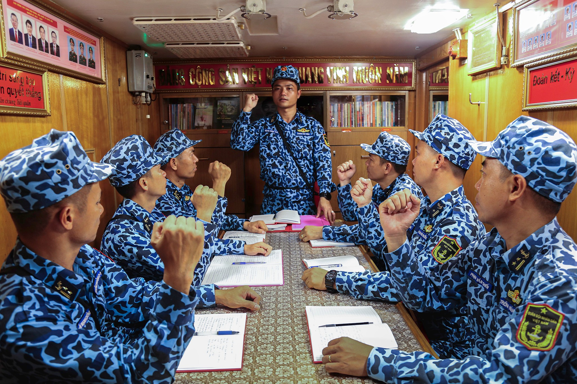 Nguồn “oxy tinh thần” của bộ đội tàu ngầm. Việc quán triệt, triển khai, bàn biện pháp thực hiện nghị quyết của cấp ủy đảng khi tàu rời cảng là nguồn “oxy tinh thần” nuôi dưỡng chí chí tinh thần, giúp cán bộ, thủy thủ tàu ngầm vững vàng trước sóng gió, sẵn sàng nhận và hoàn thành mọi nhiệm vụ được giao.