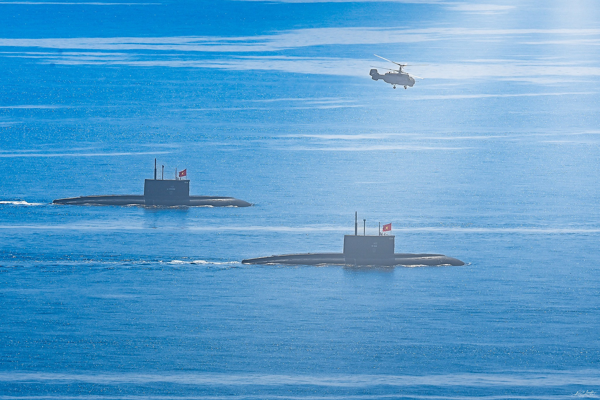 Mệnh lệnh từ trái tim. Tàu ngầm Kilo 636 - niềm tự hào, sức mạnh của Hải quân nhân dân Việt Nam cùng trực thăng Ka28 của Lữ đoàn Không quân Hải quân hiệp đồng huấn luyện, tuần tra bảo vệ chủ quyền biển đảo trên vùng biển Trường Sa.