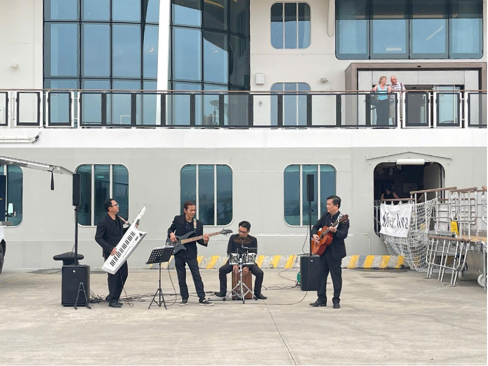 Cảng tàu khách quốc tế Hạ Long chào đón du khách bằng màn trình diễn âm nhạc tưng bừng, rộn ràng