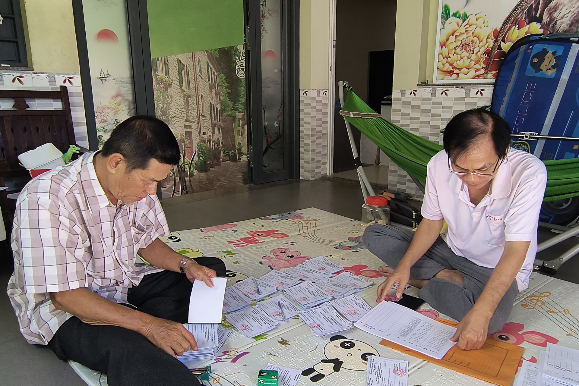 Một trưởng khu phố phối hợp với mặt trận sắp xếp lại phiếu bầu cho hợp lý phát cho cử tri.