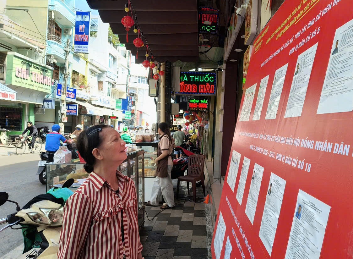 Cử tri ở vùng ven biển Lâm Đồng xem danh sách, tiểu sử ứng cử viên trước ngày bầu cử.