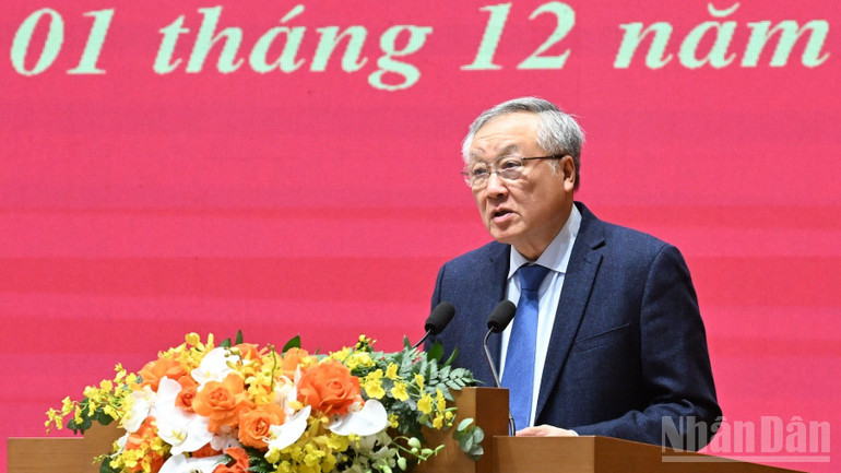 Phó Bí thư Thường trực Đảng ủy Chính phủ, Phó Thủ tướng Thường trực Chính phủ Nguyễn Hòa Bình phát biểu ý kiến tại Hội nghị. (Ảnh: TRẦN HẢI)