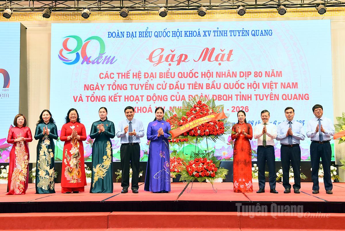 Các đồng chí lãnh đạo tỉnh tặng hoa chúc mừng Đoàn ĐBQH tỉnh Tuyên Quang khóa XV (Tháng 06-2025).