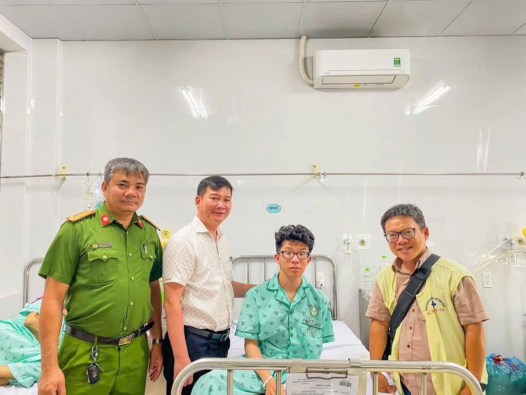 Ông Phan Tuấn Hoàng - Ủy viên Ban Thường vụ Đảng ủy, Phó Chủ tịch Thường trực UBND phường Quy Nhơn (Gia Lai) cùng đoàn công tác của phường, đã đến thăm hỏi, động viên em Nguyễn Nguyên Hoàng, học sinh Trường THPT chuyên Hùng Vương (Gia Lai), trường hợp may mắn được cứu sống khi bị đuối nước khi tắm biển Quy Nhơn.