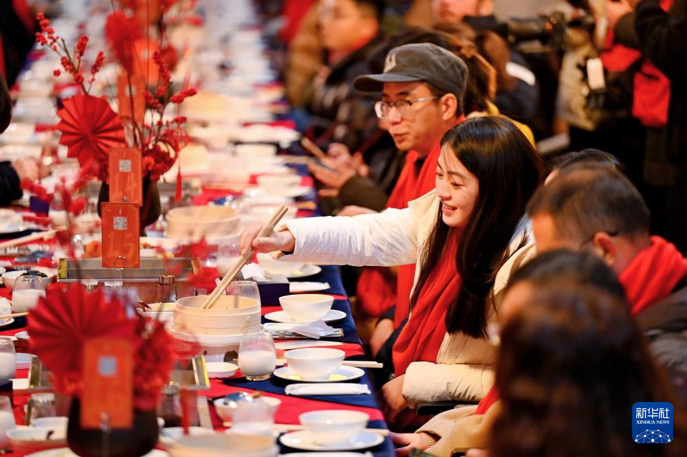 Các khách mời quây quần thưởng thức tiệc tất niên tại Thành Đô, năm 2025. Ảnh: Tân Hoa Xã.