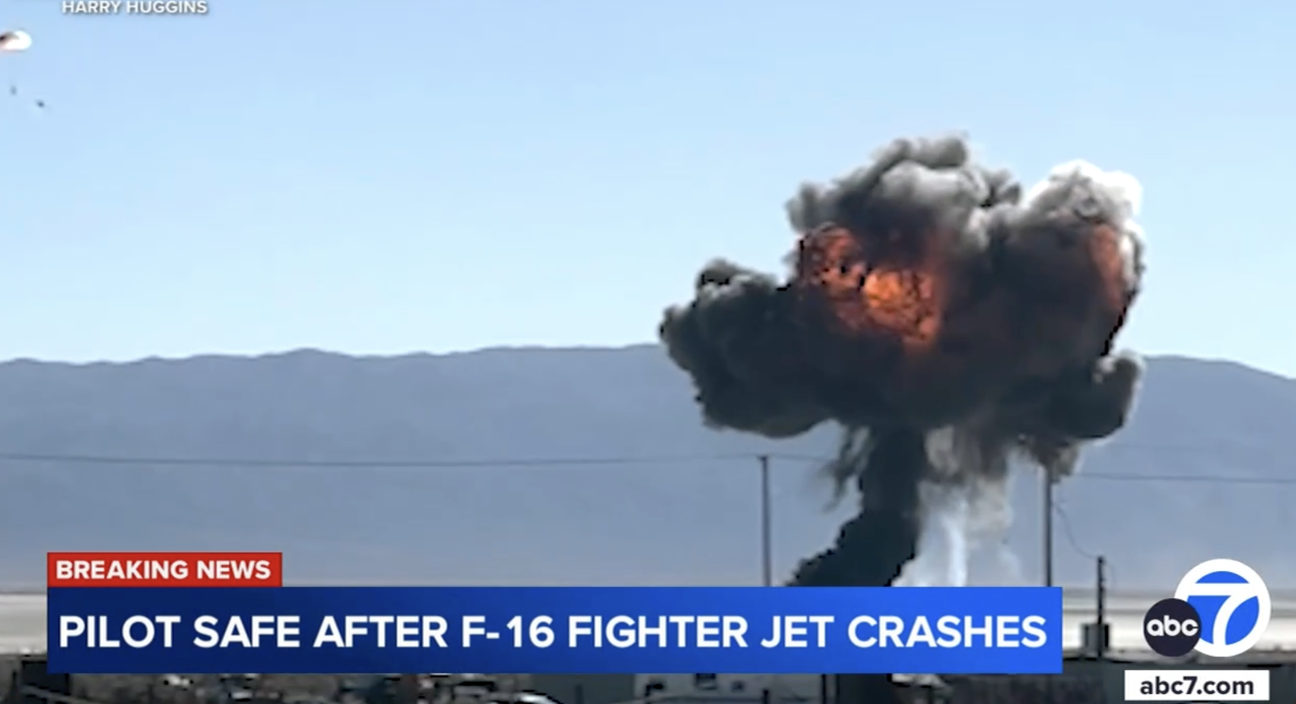 Ảnh cắt từ video của đài ABC News cho thấy máy bay F-16 bùng cháy như cầu lửa.
