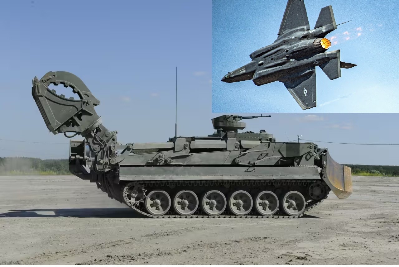 Máy bay chiến đấu thế hệ 5 F-35 của Mỹ và xe công binh bọc thép đa năng 3 trong 1 của Nga.