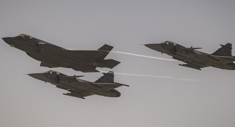 Song song với Gripen, Đan Mạch đã điều động 4 chiếc tiêm kích tàng hình Lockheed Martin F-35 Lightning II tới khu vực này.
