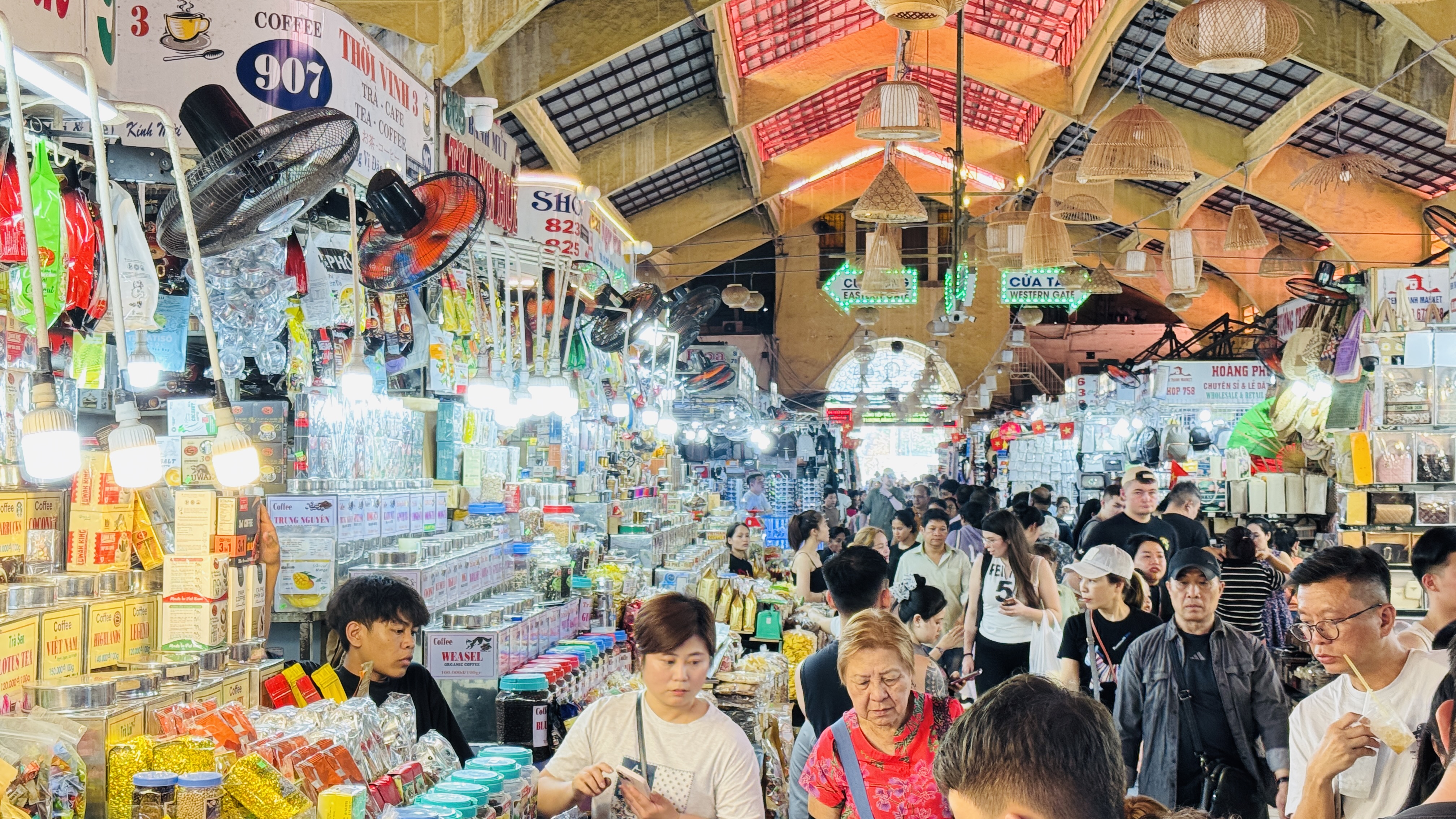 Du khách tham quan và mua sắm tại chợ Bến Thành. Ảnh: ĐÌNH DƯ