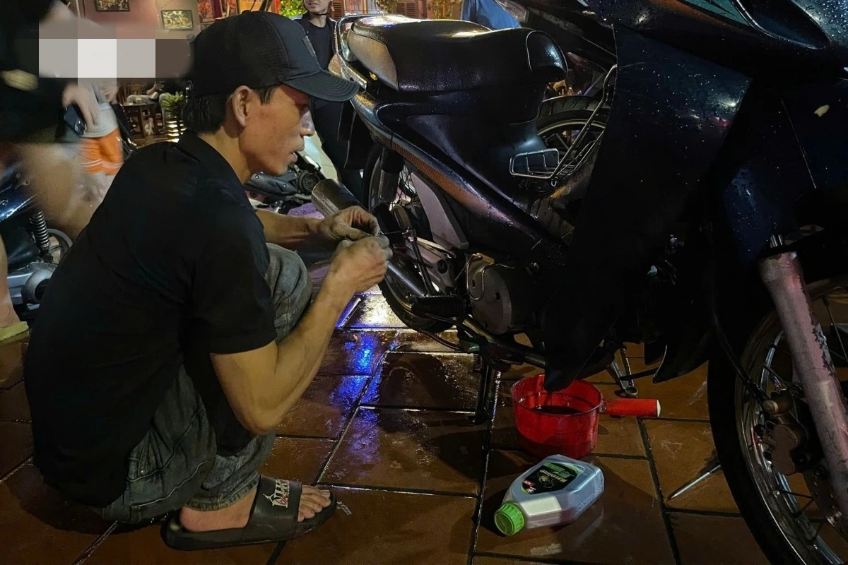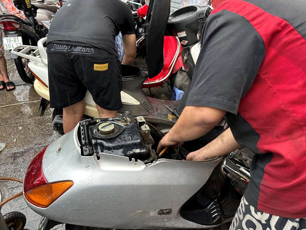 Chủ yếu nước tràn vào bugi, lọc gió, nhẹ thì lau khô và thay dầu, nặng thì phải tháo máy vệ sinh. Trung bình mỗi xe mất 200 – 300 nghìn đồng, xe nào ngập sâu thì còn nhiều hơn". Ảnh: Daibieunhandan