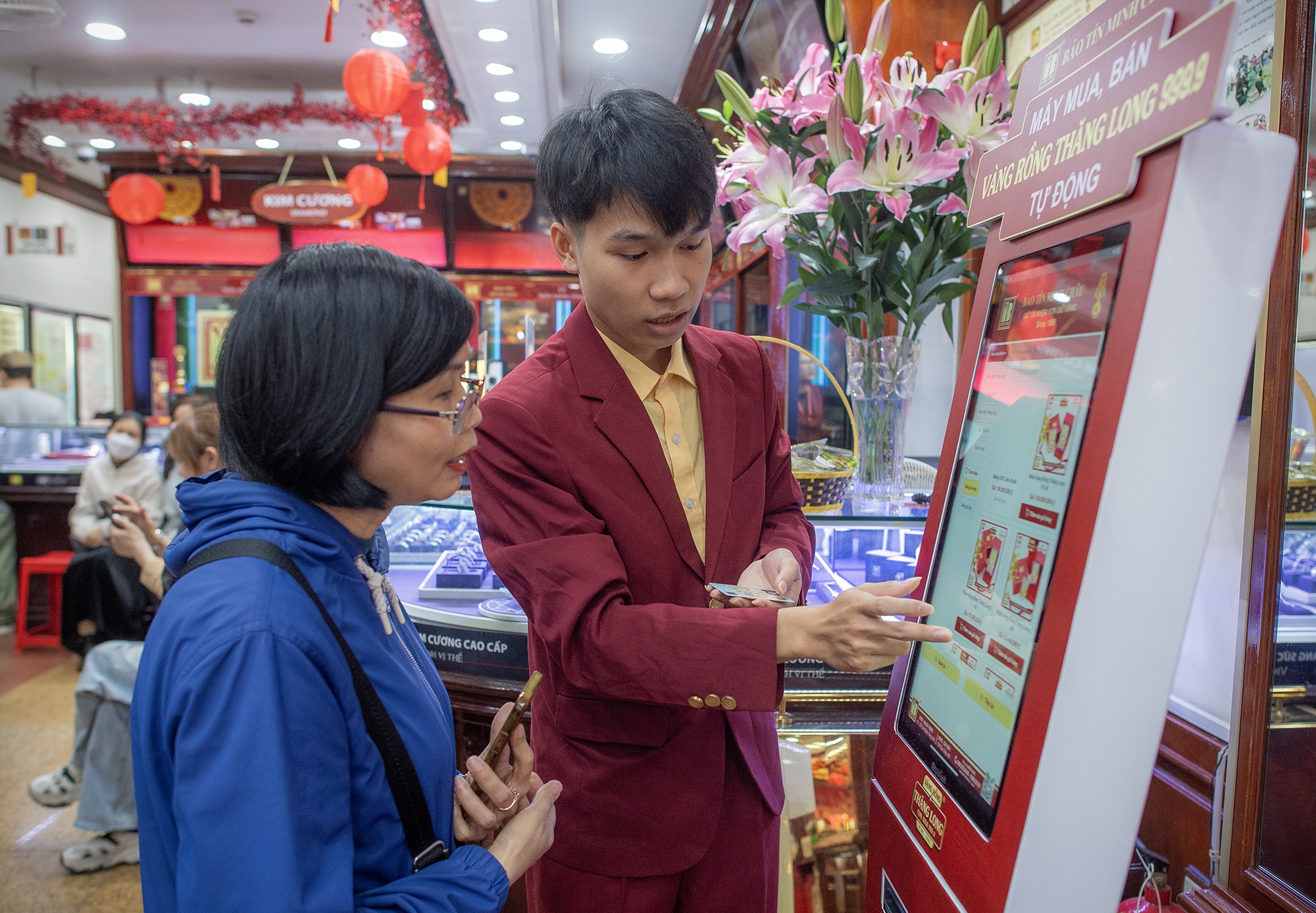 Theo đại diện doanh nghiệp, thiết bị hoạt động theo quy trình khép kín: khách hàng lựa chọn sản phẩm, thực hiện thanh toán chuyển khoản và nhận vàng chỉ trong vài thao tác trên màn hình cảm ứng. Toàn bộ quy trình được kết nối trực tiếp với hệ thống ngân hàng, đảm bảo tính chính xác, nhanh gọn và minh bạch.
