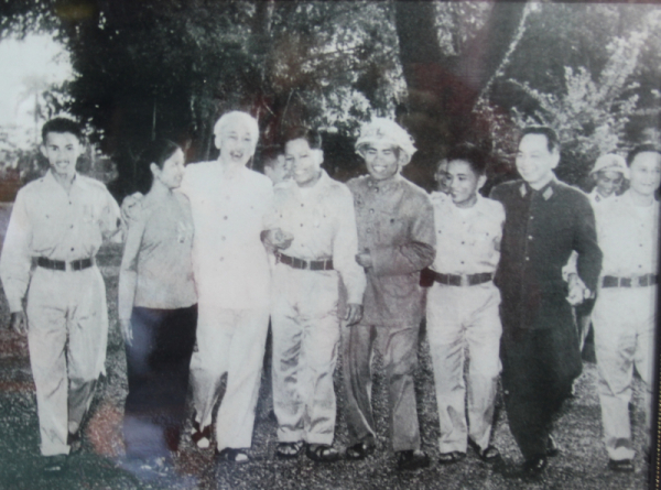 Anh hùng Hồ Đức Vai (người thứ 4 từ trái sang phải) chụp ảnh lưu niệm cùng Bác Hồ.