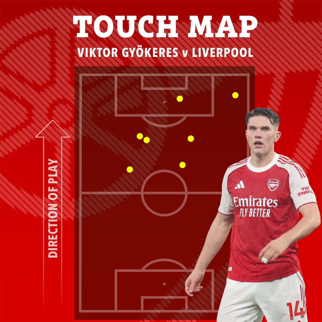 8 điểm chạm bóng của Gyokeres trong trận Arsenal vs Liverpool - Ảnh: SunSport