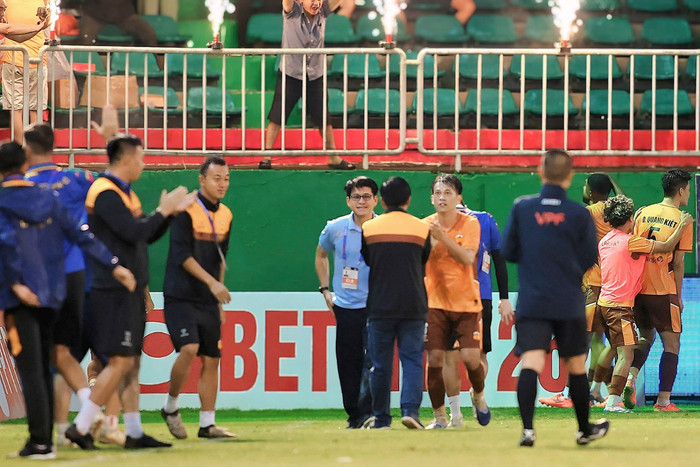 HLV Vũ Tiến Thành tiếp tục kéo dài thành tích bất bại trước HLV Popov, và HAGL là đội đầu tiên thắng Thể Công Viettel ở mùa này. Ảnh: Linh Hùng