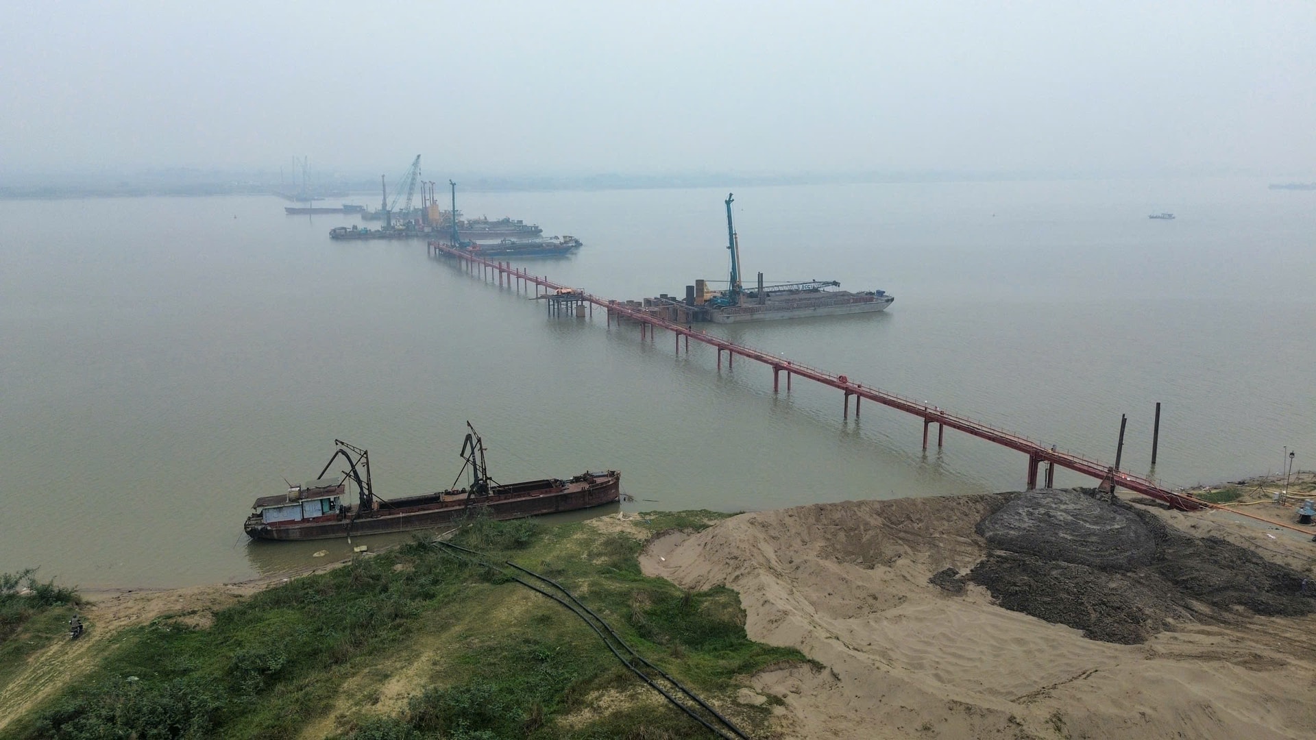 Công trường xây dựng cầu Hồng Hà. Ảnh: Sóng Hữu